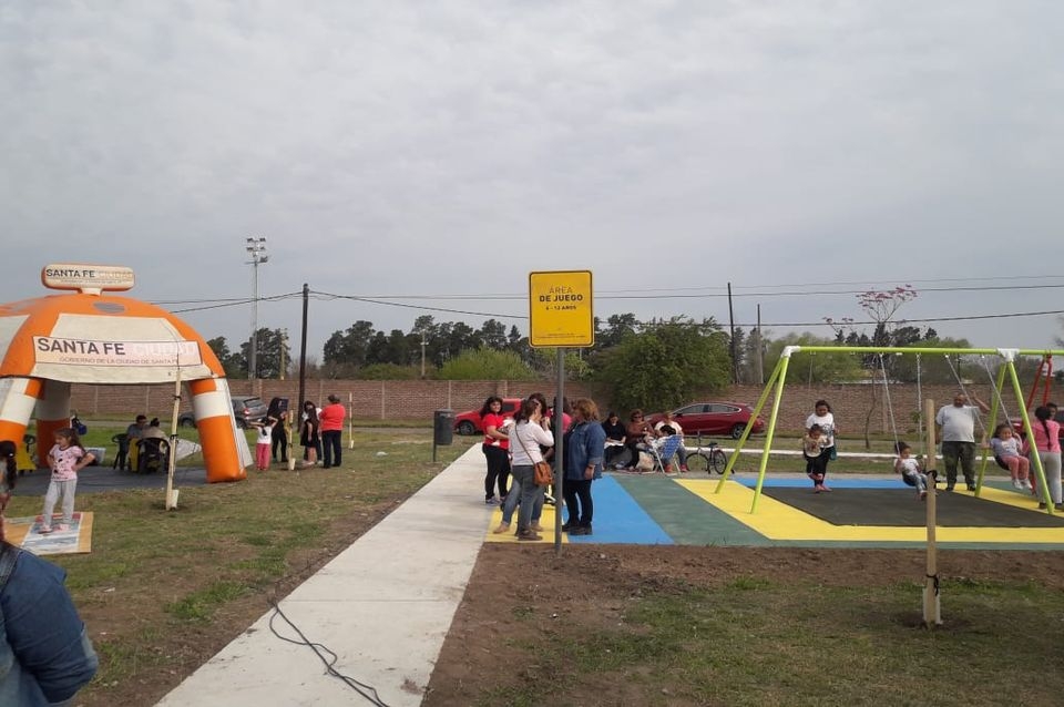 La plaza cuenta con dos áreas de juegos equipadas y modernas. Un área de 140 m2 diseñada para el uso de niñas y niños de 3 a 6 años con cartelería indicativa, cerco para seguridad de los más pequeños y piso anti golpe de caucho con un innovador diseño lúdico. La segunda área tiene 155 m2 y está preparada para los chicos y chicas de 6 a 12 años, con un pórtico de hamacas integrador, un sube y baja doble, un tobogán, cartelería indicativa, piso anti golpe de caucho y un diseño de piso estimulante y de vívidos colores. Ambas áreas de juego cuentan con bancos de hormigón premoldeados y un sector de estancia para los vecinos y familiares de los niños y niñas.