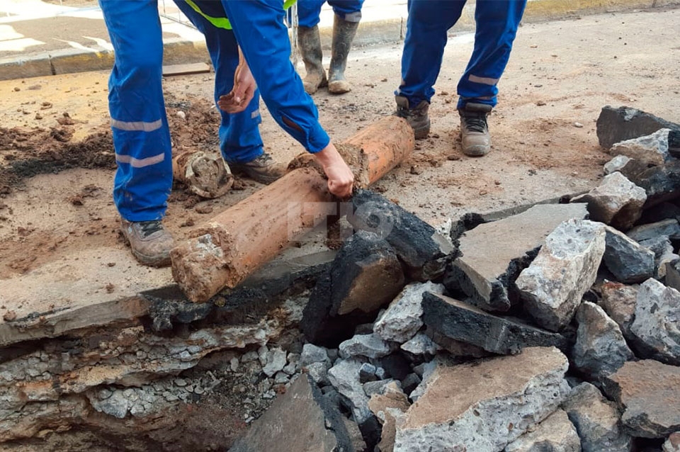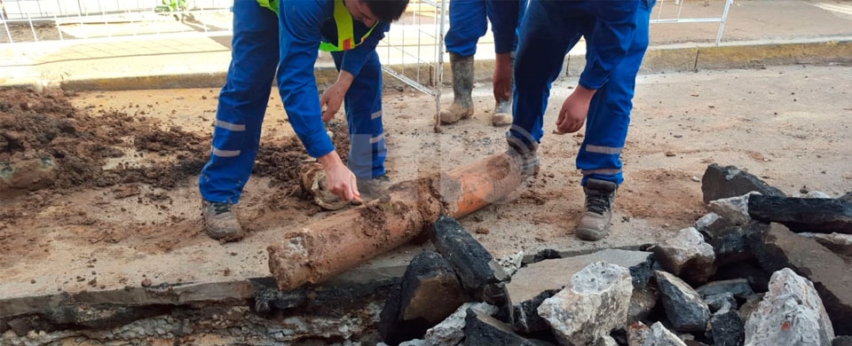 Posteriormente, el miércoles 12, gracias a la intervención de la empresa ASSA se pudo observar la obstrucción de cañerías con cemento. Y se constató el perjuicio ocasionado en el caño maestro de la cloaca.