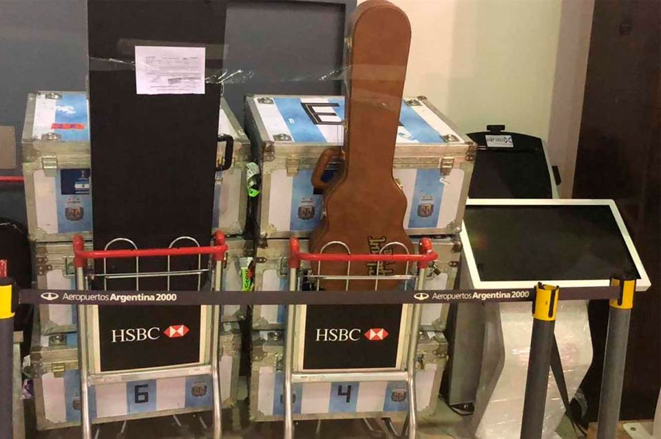 La delegación tenía once baúles con equipaje cuando pasaron los controles aduaneros en el aeropuerto internacional Ministro Pistarini, en la localidad bonaerense de Ezeiza.