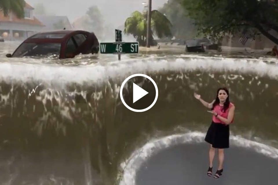 Mientras la experta en fenómenos climáticos Erika Navarro detallaba su informe en el centro del estudio, en torno a ella comenzaban a desencadenarse imágenes de computadora que daban una idea que lo que puede suceder en las calles de Miami por el avance de la tormenta.