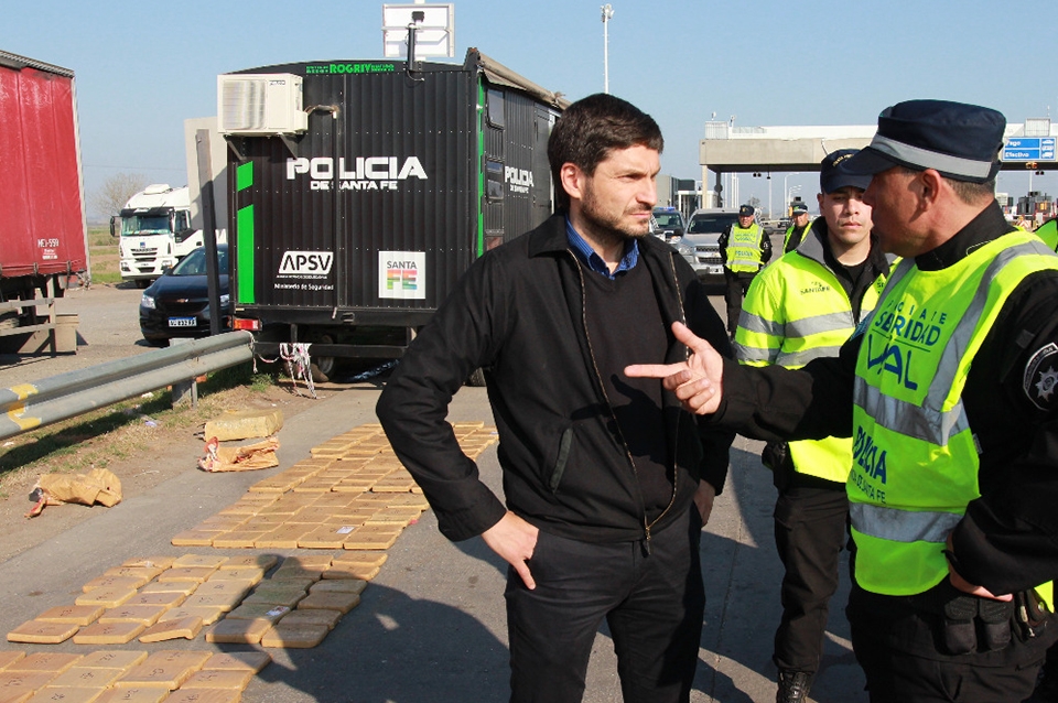 “En las últimas 24 horas las fuerzas de seguridad de la provincia de Santa Fe secuestraron cerca de 500 kilos de droga. Ayer 50 kilos y hoy esto. Todos los días estamos golpeando al crimen organizado”, manifestó el ministro de seguridad Maximiliano Pullaro, quien además destacó “la acción de nuestras fuerzas de seguridad en controles, operativos e investigaciones que están golpeando al narcotráfico.