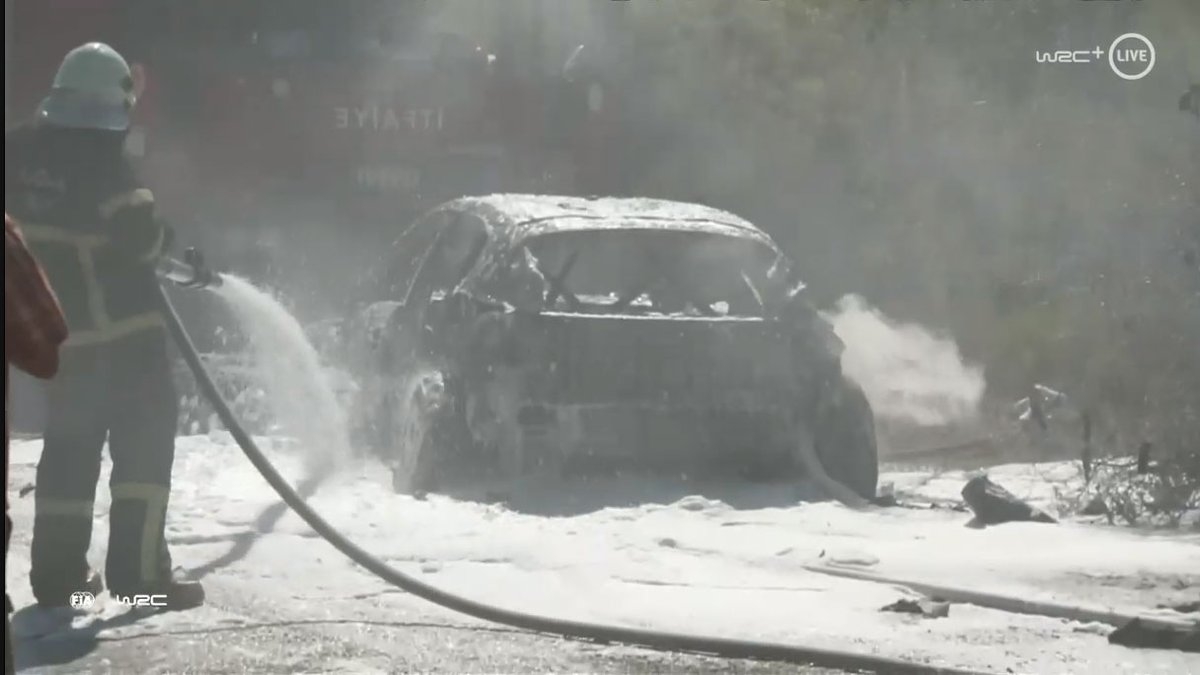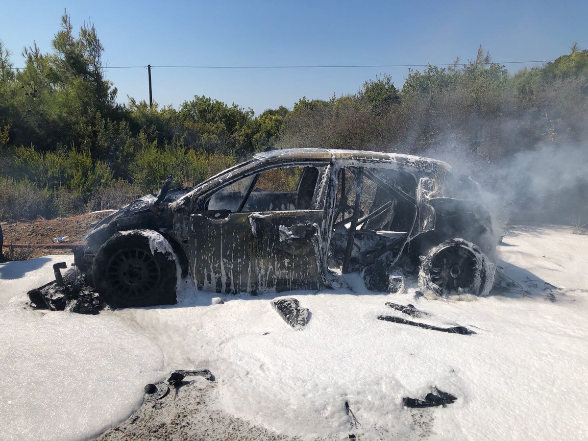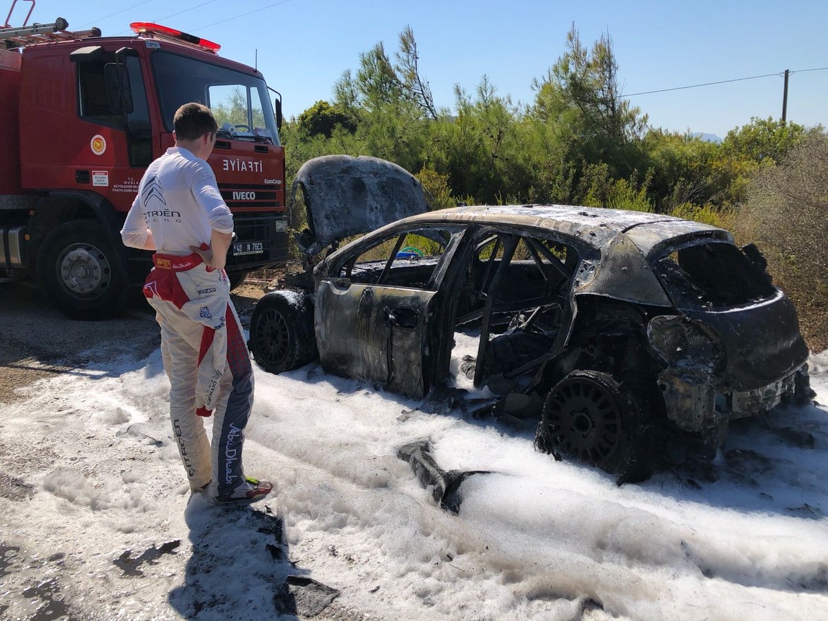 Fue un día desastroso para Craig Breen y Mads Østberg de Citroën. El C3 de Breen se incendió y se quemó [ver más abajo] mientras que Østberg se detuvo con un turbo roto. Esapekka Lappi retiró su Yaris cuando se estrelló.