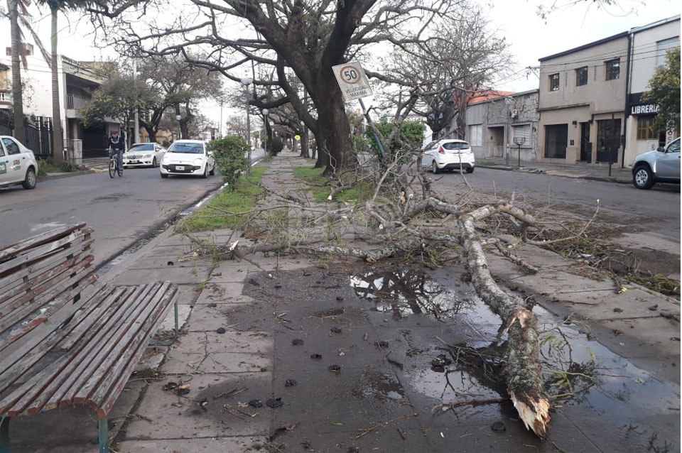 Es así que se registraron postes caídos en la vía pública en calle Colón (barrio Centenario), en la esquina de Estrada y Gaboto (barrio Barranquitas) y en el barrio costero de Alto Verde.