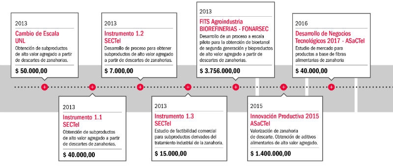 En 2013, un grupo de empresarios y productores contactaron a la Facultad de Ingeniería Química (FIQ-UNL) buscando alternativas que permitan solucionar un problema regional: grandes volúmenes de zanahorias de descarte comercial que impactaban negativamente en el medio ambiente. De este modo, en el origen del proyecto existió una demanda real del sector socio-productivo que recurrió a la UNL como aliado estratégico para dar respuesta al problema de manera conjunta.