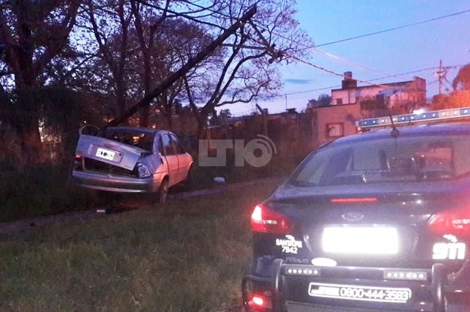 Pero el hecho no termina ahí, porque una persona testigo del robo dio aviso a la Central 911. Patrulleros llegaron al lugar y comenzaron perseguir el auto que, minutos después, terminó desviando de la calle e incrustándose en una columna de alumbrado público en Gobernador Freyre al 7100.