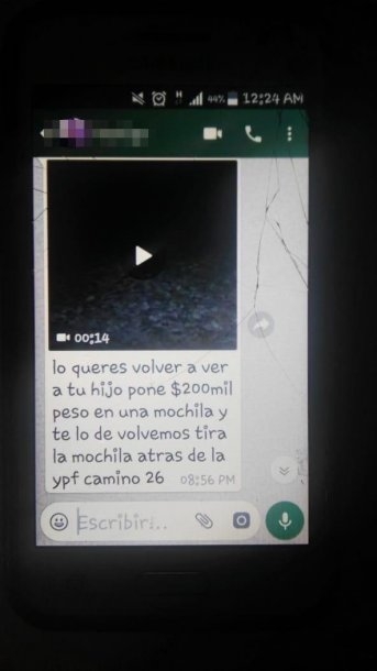 Tras el llamado, la mujer recibió un mensaje para ratificar la extorsión que rezaba: "Si lo querés volver a ver a tu hijo pone $200 mil pesos en una mochila y te lo devolvemos. Tirá la mochila atrás de la YPF camino 26", informaron fuentes policiales.