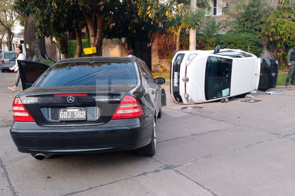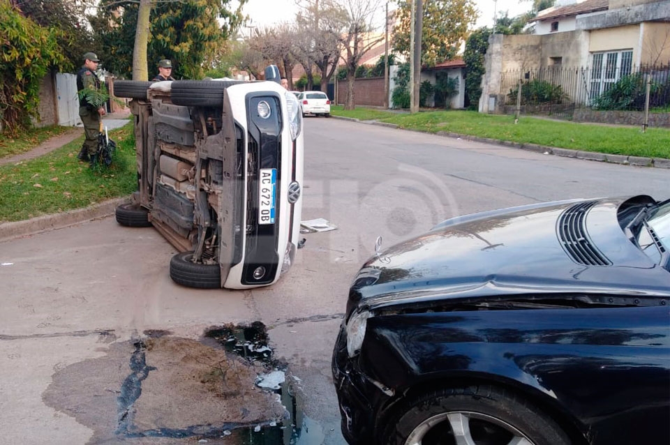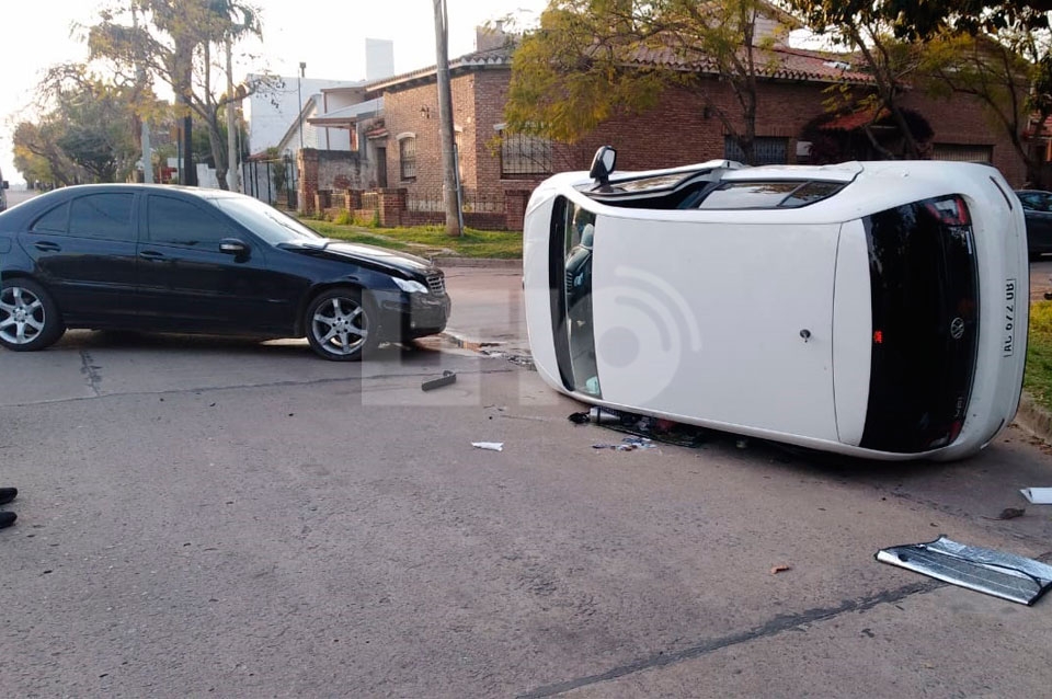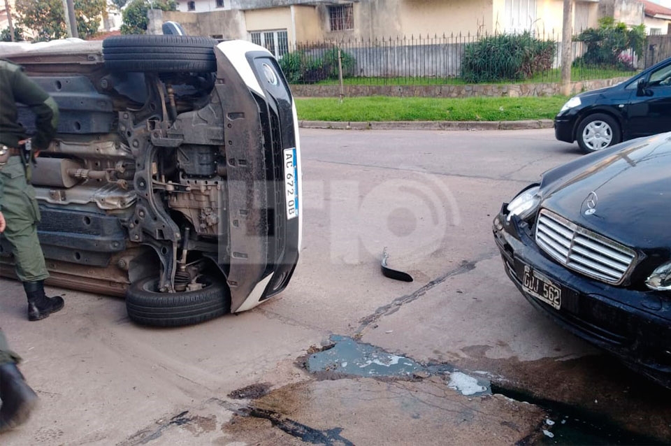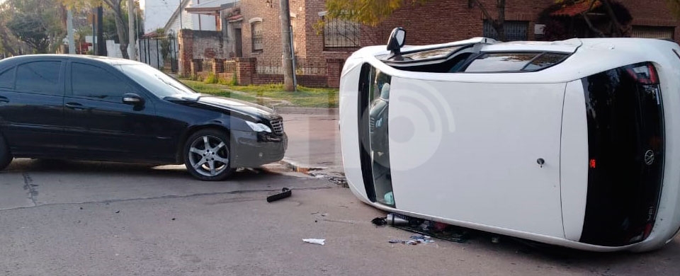 Esta mañana, dos automóviles protagonizaron un espectacular accidente y vuelco en la intersección de las calles Regimiento 12 de Infantería y Defensa, en barrio Guadalupe.