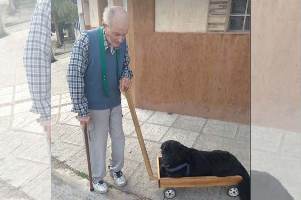 "Como no podía pagarle un andador a su fiel amigo, le fabricó un carrito y me contó casi con lágrimas en sus ojos que logró que en unos días le fabricaran uno a medida", detalló en su cuenta Facebook Martín Velázquez Chama, un vecino de la ciudad entrerriana de Concepción del Uruguay que se topó con el jubilado mientras iba a su trabajo el lunes pasado.