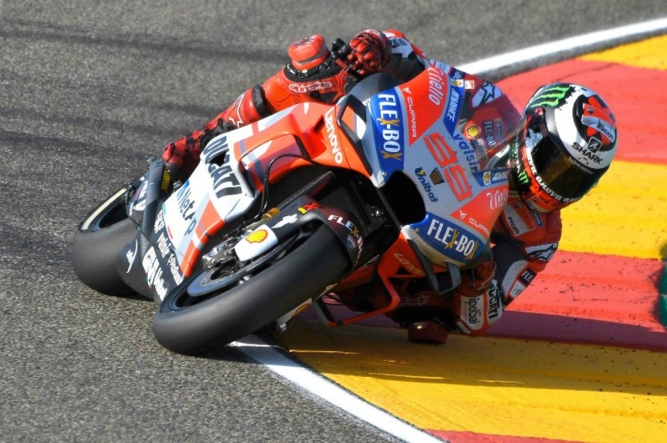 El español Jorge Lorenzo (Ducati Desmosedici GP18) sentenció con maestría su tercera mejor clasificación consecutiva y la cuarta de la temporada al ser el más rápido en los entrenamientos oficiales para el Gran Premio de Aragón de MotoGP que este domingo se disputará en el circuito de Motorland, España.