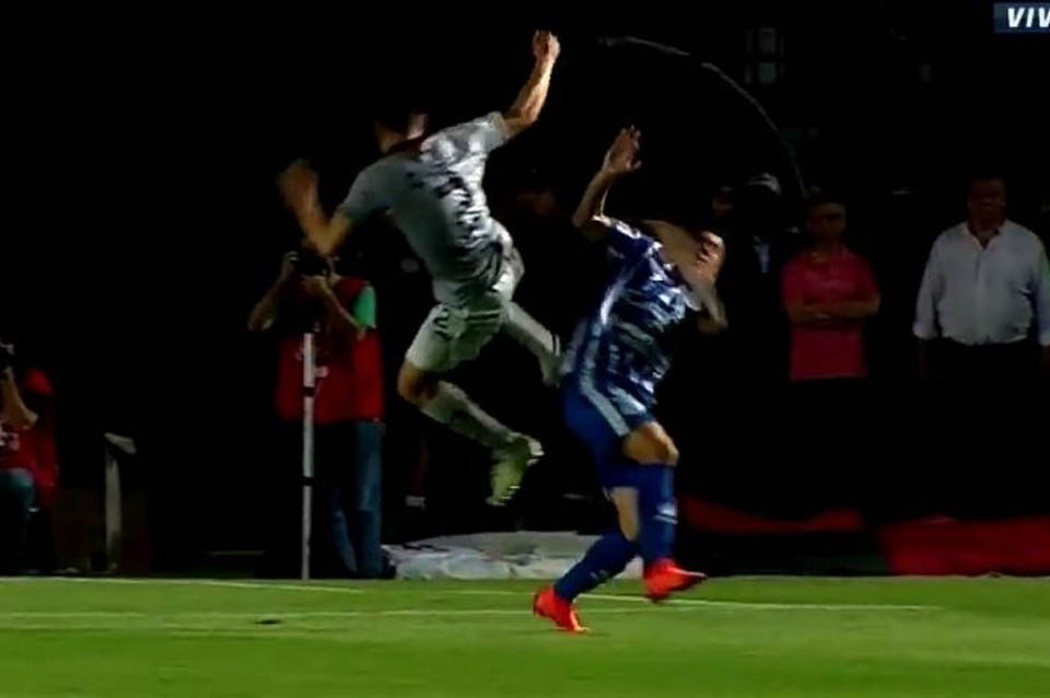 Se jugaban cinco minutos del primer tiempo, el encuentro estaba 0 a 0. Godoy Cruz intentó armar una contra luego de un corner a favor de Colón pero Gustavo Toledo lo impide con una patada que le significó solo una amarilla. ¿Cómo la viste, era para roja?