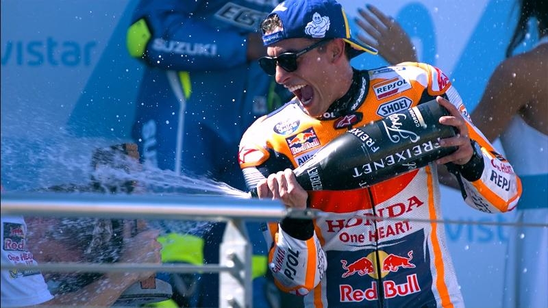 Podría haberse conformado con ser segundo, incluso con ser tercero; pero Marc Márquez no sabe lo que significa el verbo ‘especular’. MotorLand Aragón era el escenario propicio para volver a ganar después de tres triunfos consecutivos de Ducati, un trazado en el que el 93 había ganado durante los tres últimos años y donde inauguró por primera vez una curva con su nombre. Y volvió a hacerlo, tras ofrecer un tremendo espectáculo ante su afición, batiéndose con Dovizioso Ahora es más líder, con 72 puntos de ventaja sobre el italiano tras una batalla vibrante entre ambos. No podrá ser campeón en Tailandia, pero la fiesta comienza a prepararse para Australia.