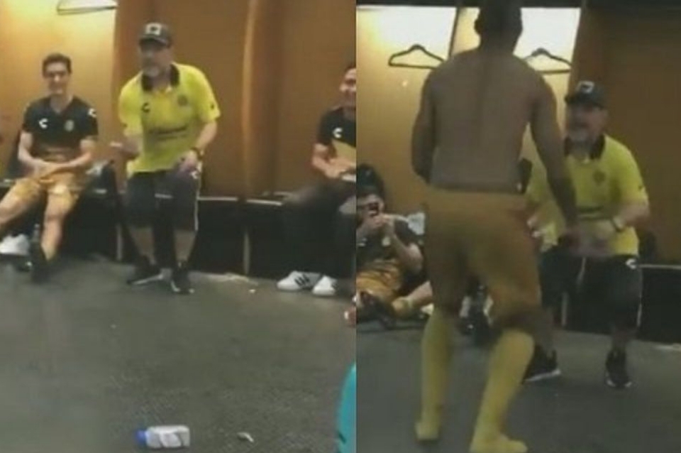 Y no es una manera de decir. Mientras sus jugadores todavía no habían terminado de cambiarse, Diego sorprendió al tirar un par de pases de baile en el medio del camarín local donde se alcanza a percibir que es música de Los Palmeras. Feliz, relajado y chocho con la entrega de los suyos, movió hombros y cadera mientras algunos lo acompañaban y otros, sin terminar de entender lo que sucedía, lo filmaban con sus teléfonos celulares.