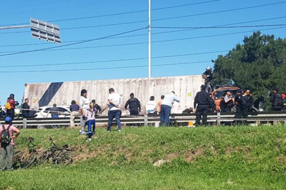 Al volcar el camión, aplastó a un automóvil Ford Escort, donde quedaron atrapados en la cabina abollada la mujer y los pequeños, informó el sitio del diario La Capital.