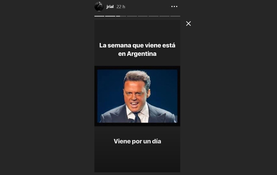 Jorge Rial dio a conocer una importante noticia acerca de Luismi. El periodista publicó una historia con la foto del cantante y la siguiente leyenda: “La semana que viene está en Argentina. Viene por un día”.