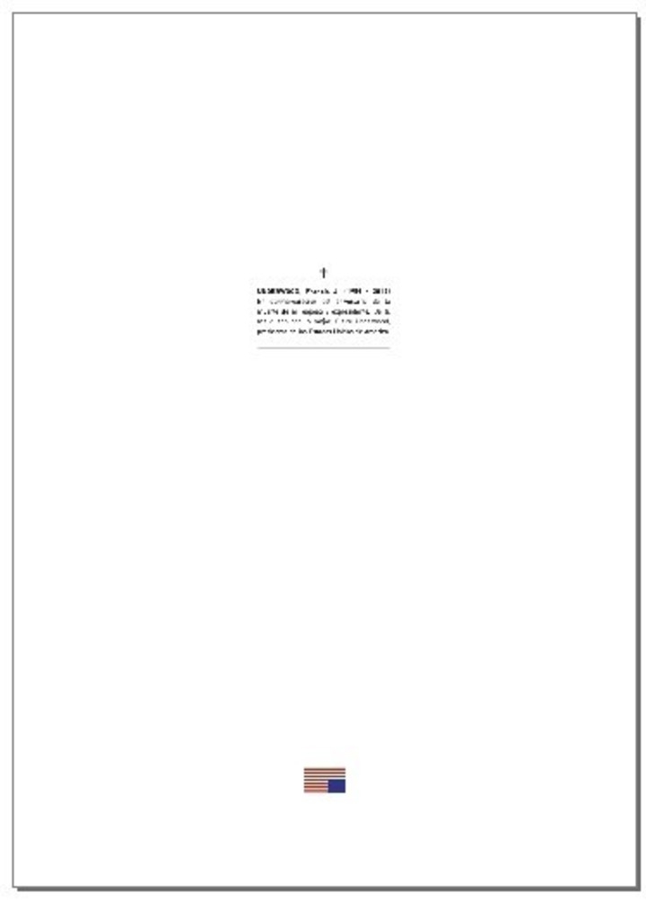 El aviso figura en el centro de una página totalmente en blanco a excepción del pie, donde está el logo de la serie: una bandera estadounidense invertida.