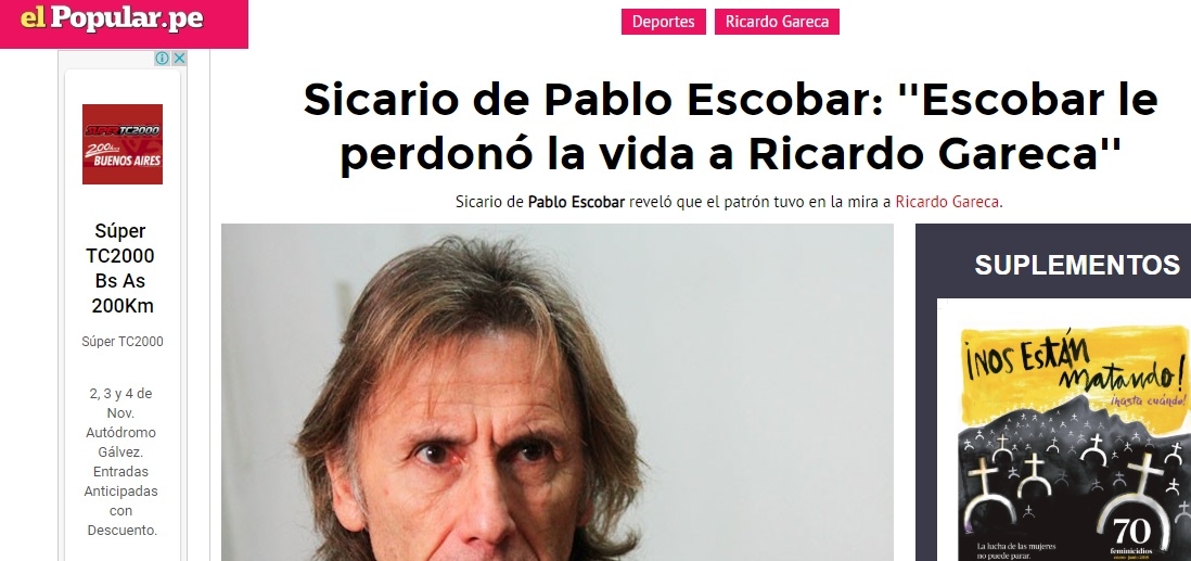 John Jairo Velásquez Vásquez, más conocido como Popeye, reveló que Pablo Emilio Escobar Gaviria quiso matar a Ricardo Gareca. “Se contempló colocarle un coche bomba”, le contó el colaborador del narcotraficante colombiano al diario El Popular de Perú.