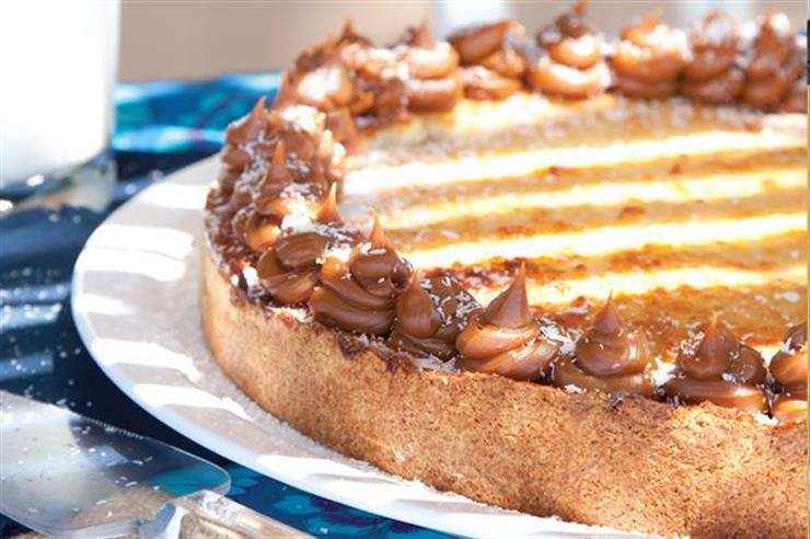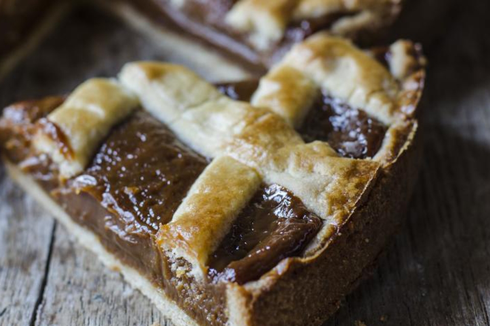 ¿Cómo se hace? En un bol amplio, batir 200 grs. de manteca blanda (retirarla de la heladera media hora antes) con 200 grs. de azúcar hasta formar una crema pálida. Agregar 2 cucharaditas de esencia de vainilla, 1 huevo y 1 yema. Seguir batiendo hasta obtener una crema bien lisa y homogénea. Integrar 450 grs. de harina leudante previamente mezclada con una pizca de sal. Envolver la masa en papel film y llevar 30 minutos a la heladera. Cortar con las manos en trozos. Volver a unirla con unos segundos de amasado y ya está lista para usar. Estirar 2/3 de la masa con el palo de amasar hasta que quede de 3 mm. de grosor. Forrar la base y las paredes de un molde desmontable de 24 centímetros de diámetro, previamente enmantecado. Rellenar la tarta con 500 grs. de dulce de leche repostero, extendiéndolo con una espátula para que quede parejo. Estirar el resto de masa formando un rectángulo y llevar al freezer aproximadamente media hora. Cortar la masa en tiras y distribuirlas sobre la tarta formando un enrejado. Pincelar las tiras con huevo batido. Hornear la tarta en moderado (180°) durante 40 minutos, o hasta que los bordes estén dorados. Dejar enfriar y después cortar. (Receta de Juan Braceli, también de Cocineros Argentinos).