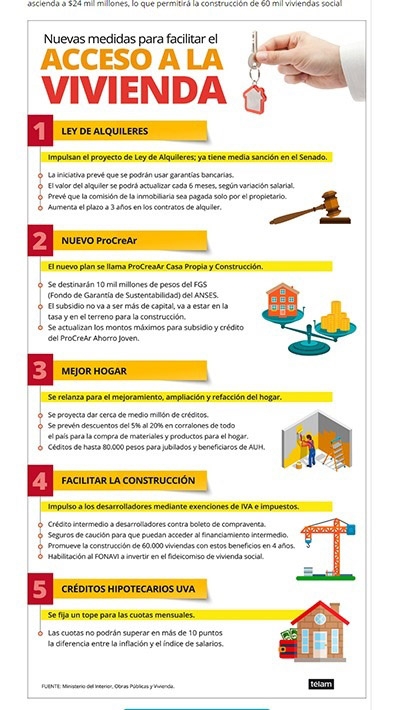 •UVA: Se fija un tope a las cuotas mensuales, las cuales no van a superar en más de diez puntos la diferencia entre la inflación y el índice de salarios.