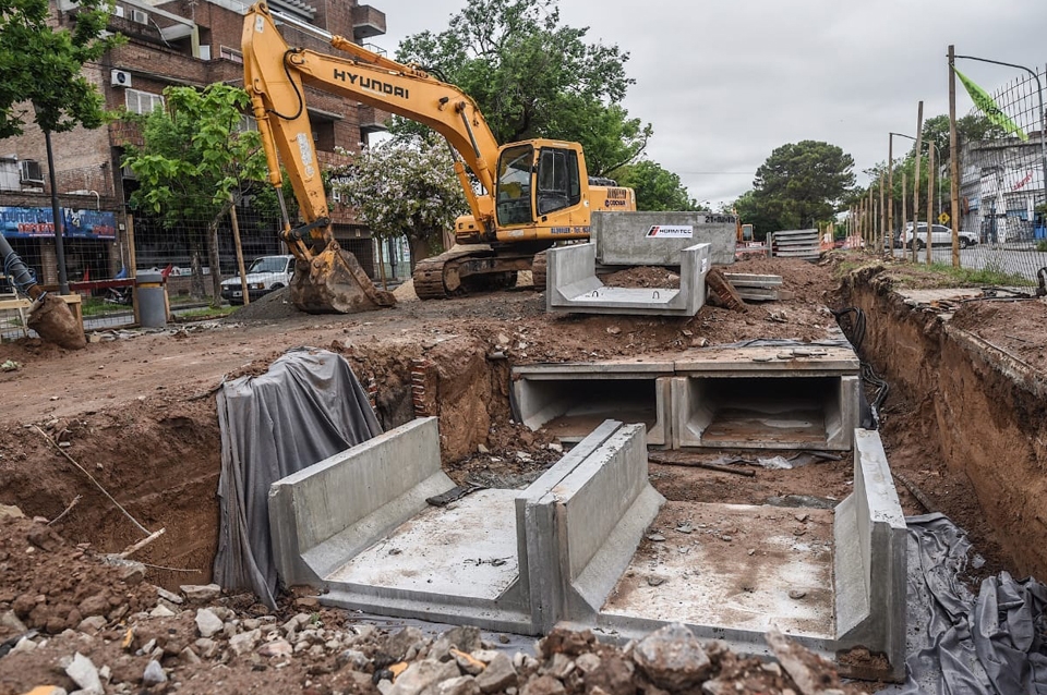 El segundo de estos frentes, "es el de calle Tucumán y San José, donde también el conducto pluvial está en buena parte ya construído, y ahora se avanza con el nuevo pavimento de hormigón", indicó Lucas Condal, sobre la intervención que permitirá resolver los anegamientos por los excedentes pluviales frente a la escuela. En tanto, el tercero corresponde al retardador pluvial en Catamarca y Freyre. "Allí, ya se trabaja en la excavación de los que serán los futuros amortiguadores pluviales. Entre Catamarca y La Rioja quedará a cielo abierto como un espacio paisajístico, con plantas y vegetación de agua; y entre la Rioja y Tucumán, quedará enterrado". Es importante señalar que este proyecto hídrico aliviará los anegamientos recurrentes, a partir de la retención del agua de lluvia, permitiendo así la circulación vehicular.