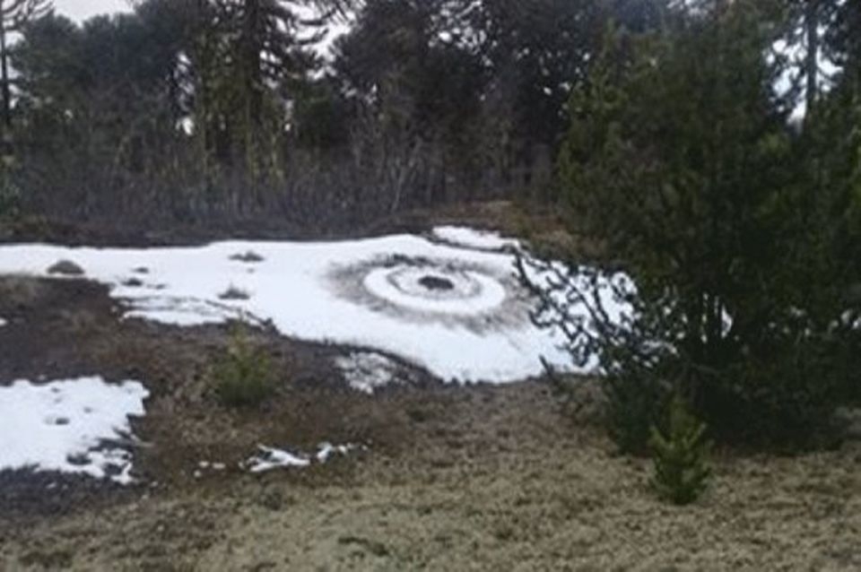 Unos extraños dibujos en la nieve tienen conmocionados a los vecinos de un pueblo de Neuquén. Es que este sábado un joven encontró dos diseños en Moquehue que le llamó la atención por su tamaño y perfección.