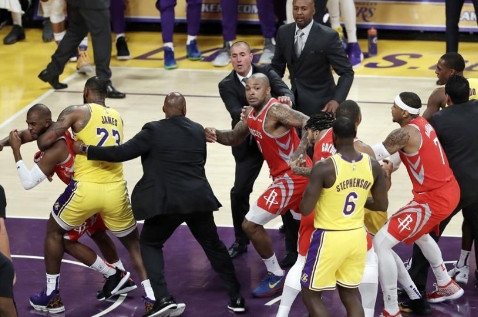Piñas y trompadas entre Los Lakers y los Rockets
