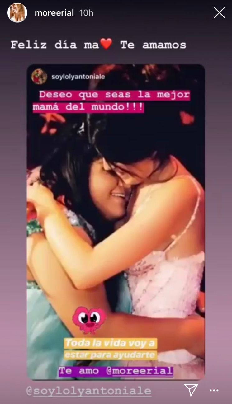 Aunque fue Antoniale quien la saludó primero: "Deseo que seas la mejor mamá del mundo. Toda la vida voy a estar para ayudarte. Te amo @moreerial".