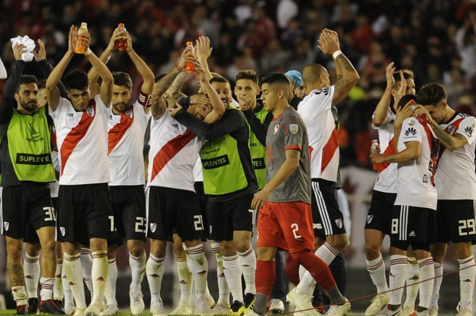 River: Franco Armani - Gonzalo Montiel, Jonatan Maidana, Javier Pinola, Milton Casco - Leonardo Ponzio - Juan Fernando Quintero, Exequiel Palacios, Gonzalo Martínez - Ignacio Scocco y Rafael Santos Borré. DT: Marcelo Gallardo.