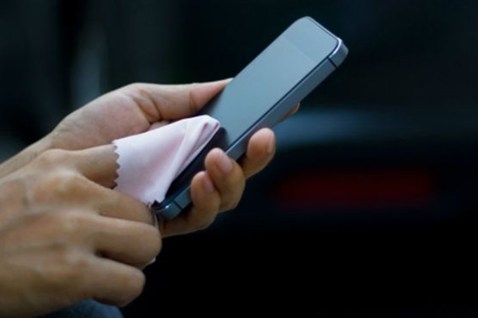Los expertos recomiendan humedecer una esquina de un paño o gamuza de microfibras con una proporción aproximada de 60% agua destilada y 40% de vinagre blanco y pasarlo sobre el teléfono con movimientos circulares evitando verter el líquido directamente sobre la pantalla.
