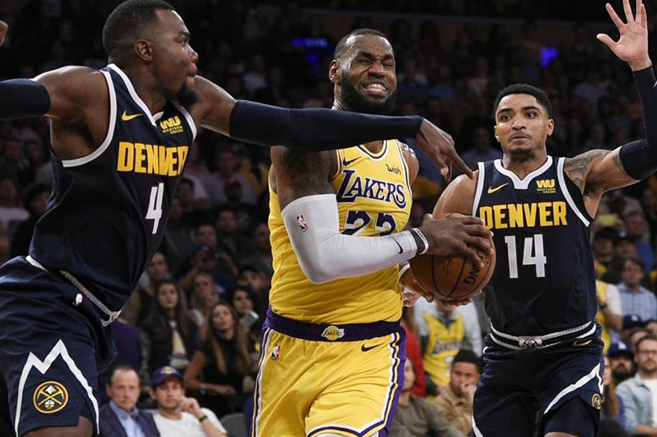 Los Angeles Lakers obtuvo anoche su segunda victoria en la temporada al frenar a Denver Nuggets, que había ganado los cuatro jugados, con un 121-114. LeBron James antó su primer triple-doble de la temporada.