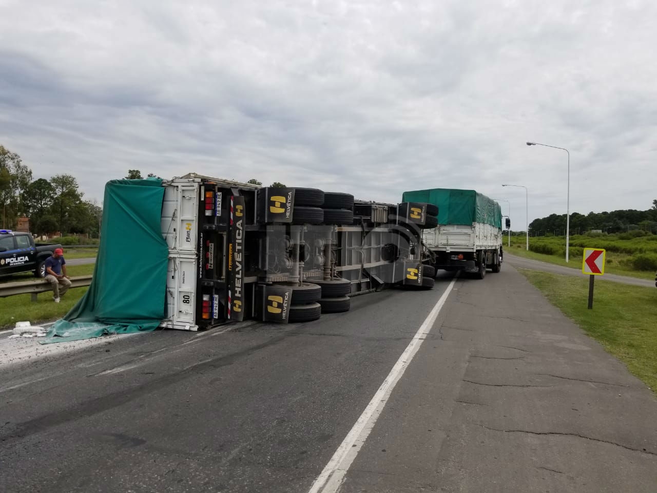 Este lunes a las 13:45, el acoplado suplementario que llevaba un camión por la autopista Santa Fe- Rosario volcó y se desprendió.