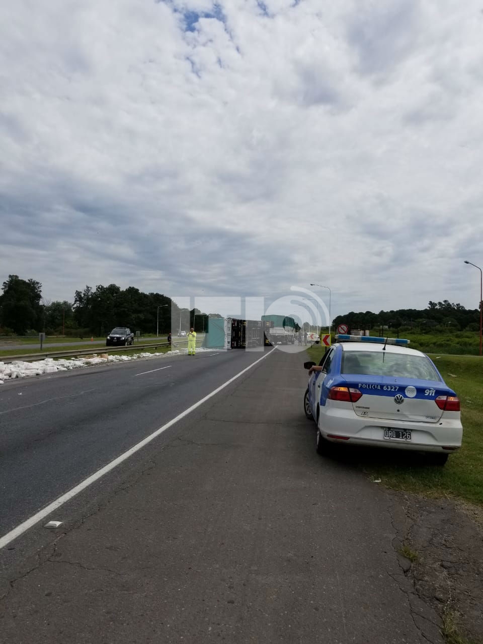 #ÚltimoMomento | Volcó un camión en la Autopista Santa Fe-Rosario a la altura del Club de Campo de @ColonOficial. El cargamento de sal está disperso en la carpeta asfáltica y el tránsito se encuentra cortado ▼