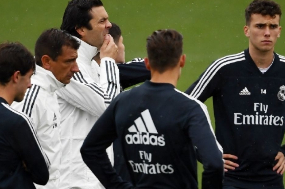 Bajo la lluvia y en un ambiente más bien distendido, los jugadores madridistas realizaron varios ejercicios bajo el ojo atento de Solari, técnico del filial que ha ascendido provisionalmente tras la dura derrota 5-1 contra el Barcelona el domingo, que supuso la sentencia para Lopetegui.