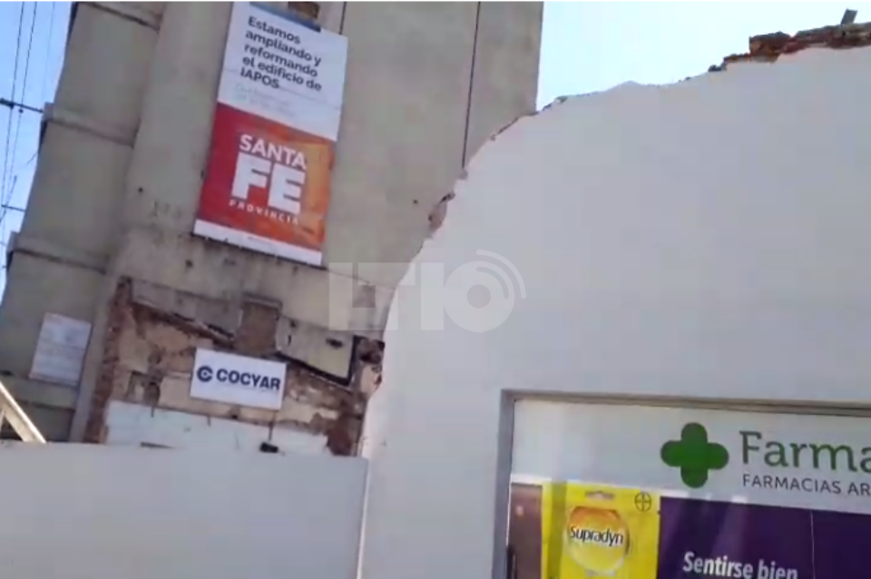 Según los dueños del local, el colapso habría sido causado por el movimiento de suelo consecuente de las obras que se realizan en el ex edificio del Iapos y el inmueble contiguo a la farmacia.