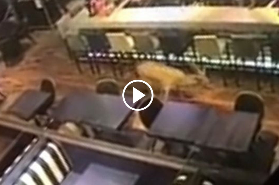 En la filmación se observa cómo el ciervo cae al menos dos veces al suelo y luego sale del local por la puerta que da al bulevar Oroño.