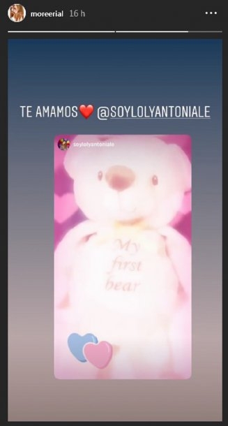Loly compartió en Instagram la imagen de un gran oso de peluche, destinado para el bebé.