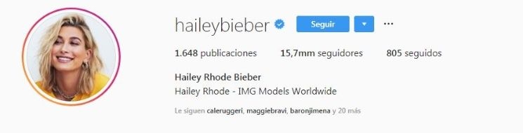 El primer detalle que confirmó la noticia fue el perfil de Instagram de Hailey, quien ya no tiene su apellido sino el de Justin: "Hailey Rhode Bieber". Por otra parte, Bieber dio de alta la noticia al público con una foto de ambos agarrados de la mano y un mensaje muy contundente: "Mi esposa es increíble".