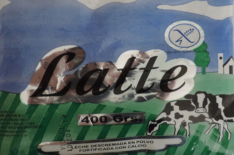Se trata de la leche descremada en polvo fortificada con calcio y leche entera en polvo fortificada con vitamina A y D, marcados con leyenda y el logo no oficial de “Sin T.A.C.C.”