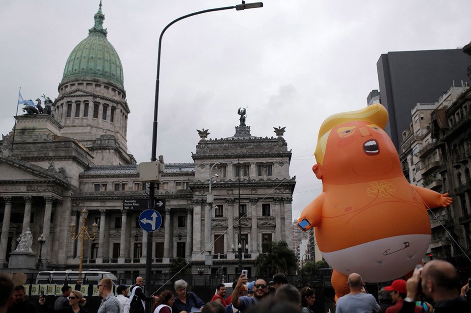 "Baby Trump", el muñeco inflable del presidente norteamericano que aparece en todas las marchas en su contra no se quiso perder la cita en nuestro país y causa revuelo en las redes sociales.