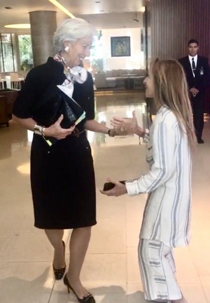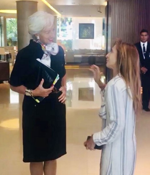 Florimonte pudo acercarse a Lagarde y contarle que ella la imitaba todas las semanas en el programa Periodismo para todos. La funcionaria se mostró muy simpática con la actriz y hasta llegaron a compartir un breve diálogo y estrechar sus manos.