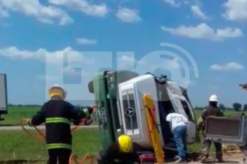 El chofer de un camión quedó atrapado en el vehículo luego de volcar en la ruta 19, kilómetro 37, a la altura de la localidad de San Jerónimo del Sauce.