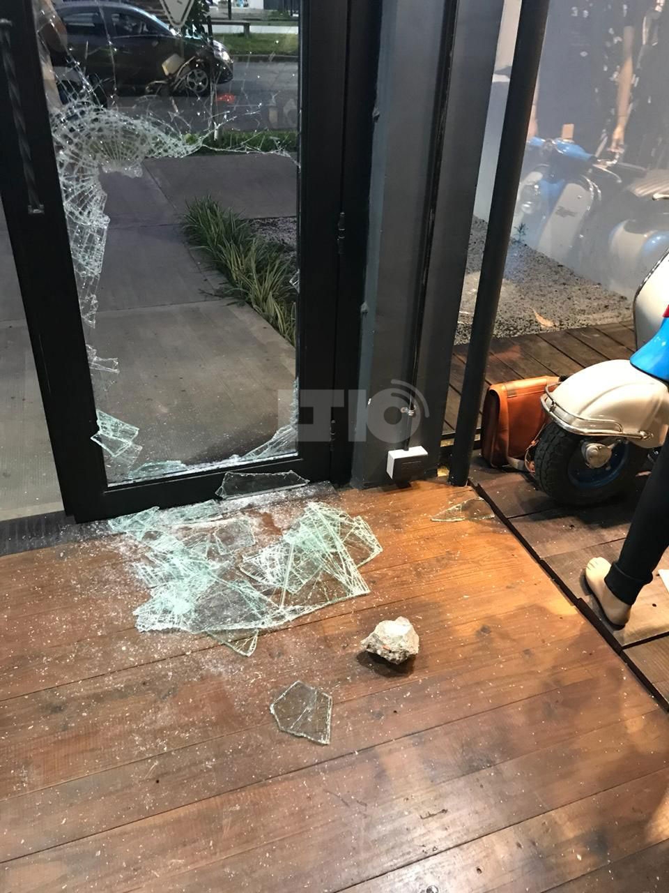 El dueño relató que los sujetos utilizaron una piedra de gran tamaño (aproximadamente 25cm de diámetro) para destrozar el vidrio del negocio y acceder al mismo.