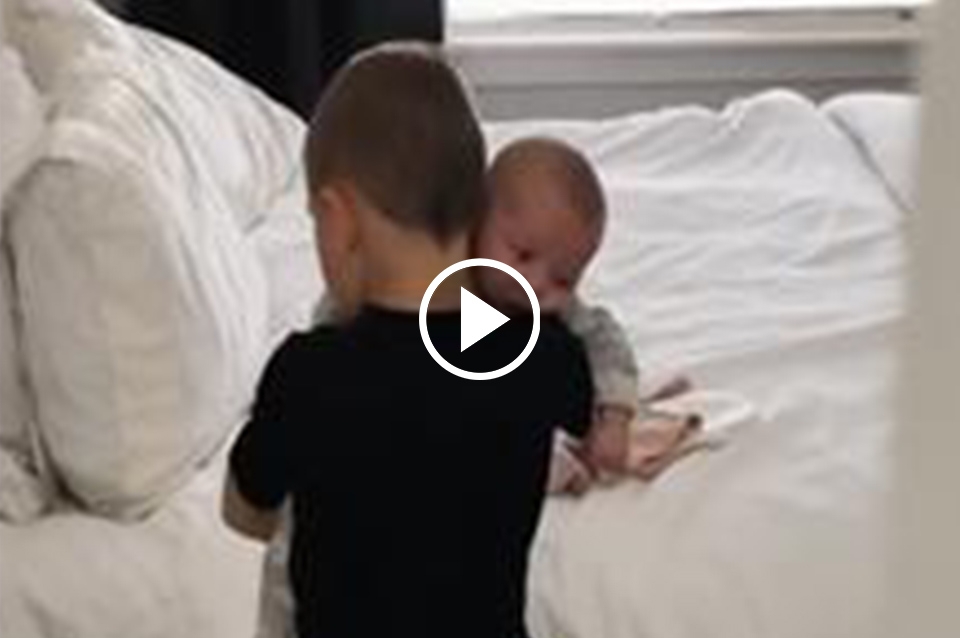 Video: su hermanita lloraba y él logró calmarla con caricias y besos