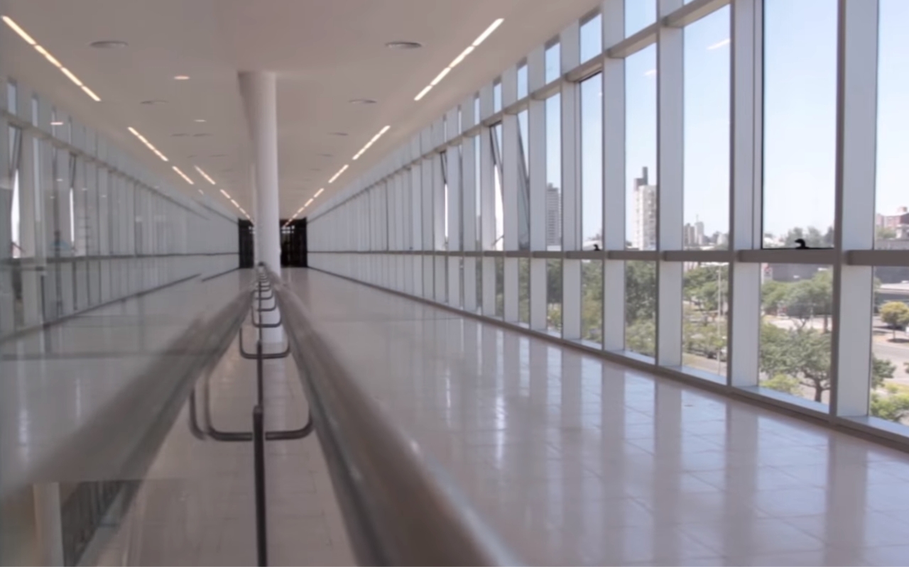 Codina mencionó que el edificio no tiene columnas y eso produce “una sensación bastante extraña”. Sólo tiene cuatro puntos de apoyo y, luego, un entramado de vigas que no está a la vista, de donde cuelgan las lozas del primer y segundo piso,, así como el techo de la planta baja.