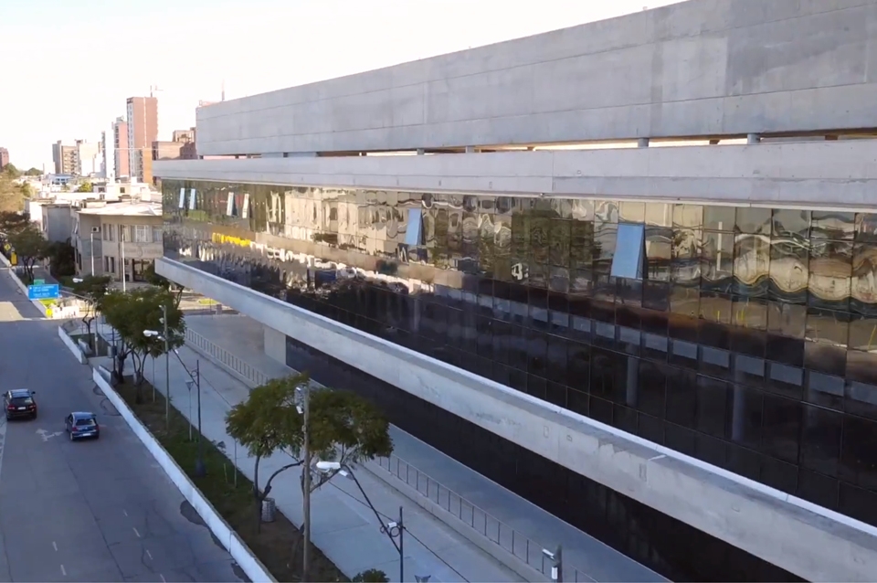 El edificio comenzó a construirse en 2011 y en los primeros años la marcha de la obra fue lenta debido a conflictos sindicales de la Uocra. En 2013 la obra tomó un fuerte impulso y desde entonces avanzó en las diferentes etapas de su construcción. La estructura se desarrolla en dos niveles para reducir la dependencia de ascensores y garantizar la amplitud de visuales urbanas, potenciando sus posibilidades de ventilación e iluminación natural.