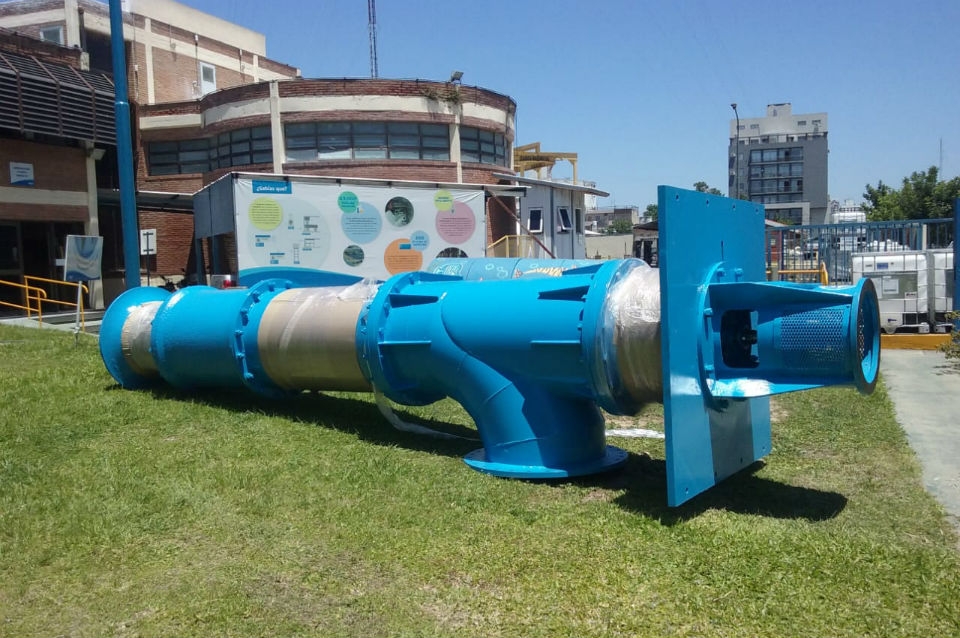 Está próxima a instalarase una de las grandes bombas, reparada a nuevo, correspondiente a la estación de transferencia de agua potable a la reserva de la planta potabilizadora para confiabilizar su operación.