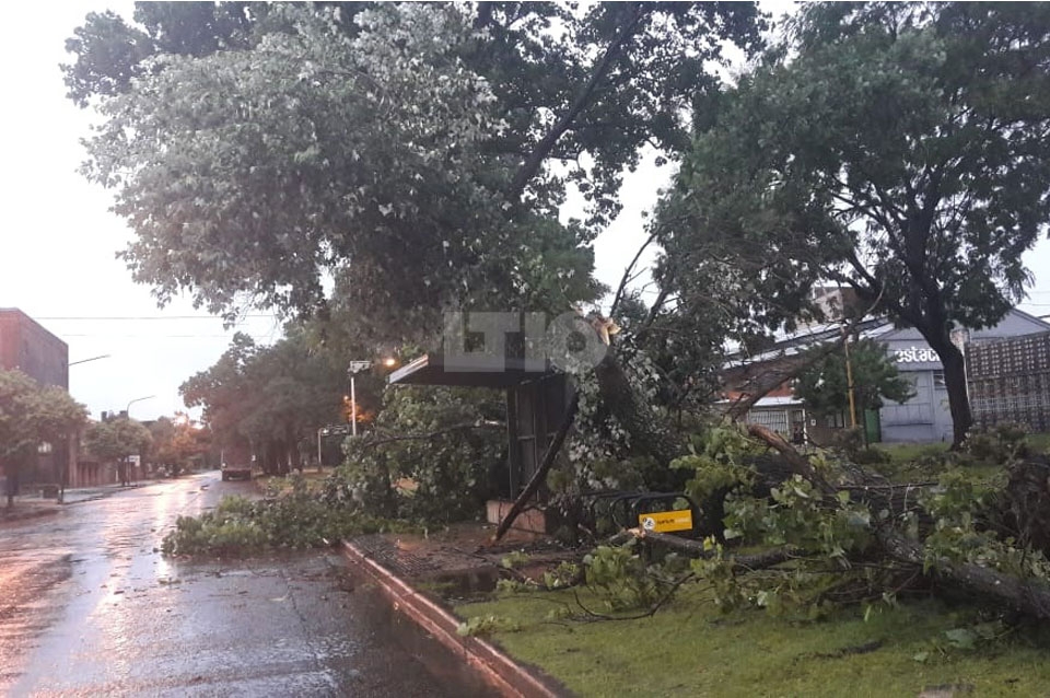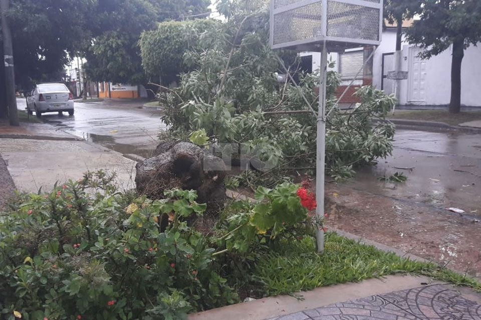 Durante el relevamiento, se observaron varios árbol caídos interrumpiendo el paso en algunas calles como es el caso de Pedro Vittori al 3600, casi Mariano Comas, donde un árbol cayó sobre una garita de colectivos.