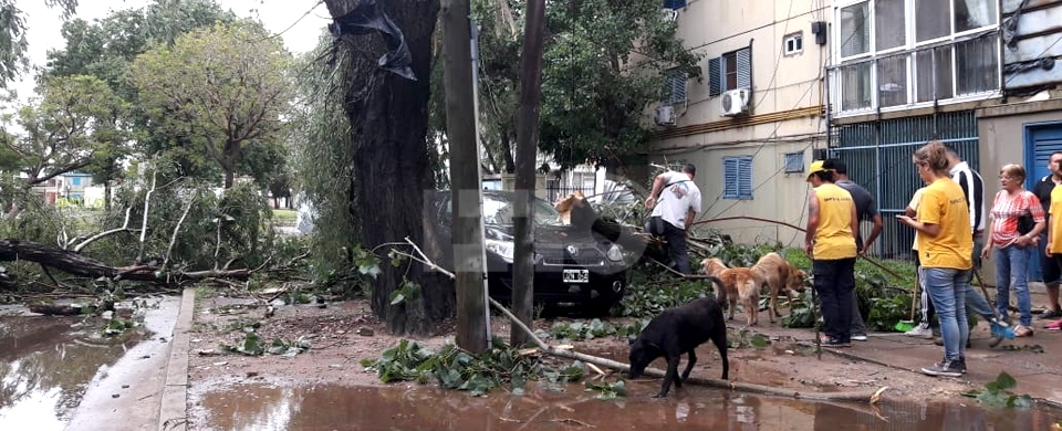 Los fuertes vientos y las abundantes lluvias provocaron destrozos en el lugar. Los vecinos y cuadrillas municipales trabajan para que vuelva la zona a la normalidad