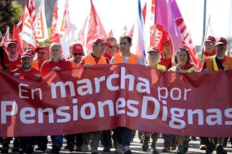 La Coordinadora Estatal por la Defensa del Sistema Público de Pensiones (COESPE) y otros grupos convocaron a manifestar en un centenar de municipalidades para reclamar "pensiones dignas".