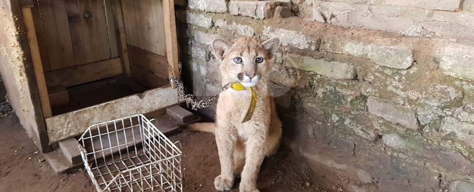 Al llegar, los efectivos se encontraron con Nata, una hembra de poca edad atada en el fondo de la vivienda. Se trata de un puma que, pese a ser un animal salvaje, los habitantes de la casa la tenían viviendo como un perro.