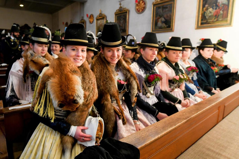 Mujeres vestidas tradicionalmente asisten a un acto conmemorativo sobre el llamado asesinato navideño de Sendlinger en Waakirchen, en el sur de Alemania, para conmemorar a las víctimas del levantamiento contra la ocupación de los Habsburgo en 1705, en el que asesinaron a más de 1.000 bávaros en la noche hasta el 25 de diciembre de 1705